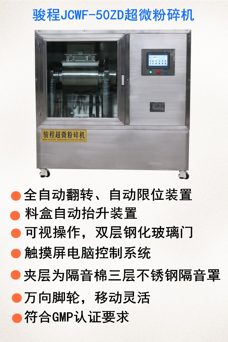 9、粉碎方法和粉碎温度:要根据药材质地、理化性质选择不同粉碎方法和粉碎温度,例如单独粉碎、混合粉碎、干法粉碎、湿粉粉碎、低温粉碎。以上粉碎方法采用骏程超微粉碎机都能实现。