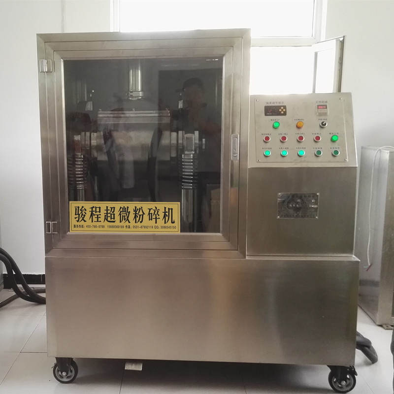 JCWF-25型超细粉碎机设备 运用高速撞击力和剪切力,使物料在双向复合力的作用下压缩撕裂破碎,对于纤维状、高韧性、高强度、含油率高、含糖量高的物料都可以粉碎至细胞级微粉。适应于各种植物的根、茎、叶、含糖性原料(如枸杞、麦冬等)、西药、食品添加剂、各种杂粮、各种脱水的(蔬菜、水果)、化工原料、各种颜料、碳黑等非金属原料的超微粉碎。根据物料对温度的要求选用低温功能,对含芳香性、挥发性成分的植物药材进行低温超微粉碎,可避免有效成分的损失。可使升温后软化或发粘的药物易于粉碎。保证了物料的色泽、品质、成分。在密封及净化状态下进行超微粉碎 ,防止成份偏析及损失。全封闭作业既避免了微粉污染周围环境,又可控制微生物和灰尘的污染。不会造成新的污染,提高微粉的卫生学质量。