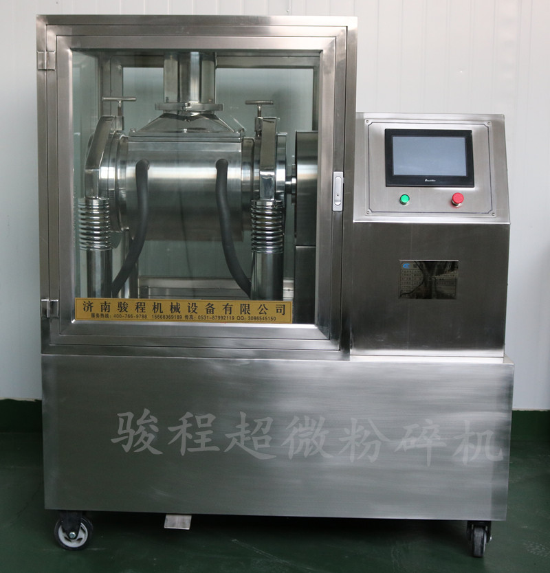 骏程灵芝细胞破壁机配置制冷系统,将粉碎温度温度控制在10度以下,物料在低温下其韧性出现均匀地降低,各部位由于不均匀收缩而产生内应力,极易引起薄弱部位破裂和龟裂,导致物料内部组织结合力降低,当受到一定的冲击时,极易破碎成细粉,还能够较好的控制粉体的粒径。粉碎方式上采用多磨不筛的方法,全密闭操作不分级,更大限度减少中间环节,可以显著降低药物的污染;全密闭作业可以更大限度减少药物损失、避免污染;不分级作业保持处方用药的全部组分,没有有效成分的损失。这样既符合制药的发展趋势又符合处方用药的要求。