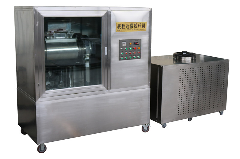 骏程低温磨粉机利用高强度的振动,使物料在磨筒内受到高加速度撞击、剪切、研磨,可在极短时间内达到理想的粉碎效果。物料在粉碎过程中呈流态化,使每一个颗粒具有相同的运动状态,在粉碎的同时达到精密混炼(分散乳化)的效果。通过调节振动的振幅,振动频率,介质类型。可以实现超微粉碎为目的的或以精密混炼(分散乳化)为主要目标的作业。设备与物料接触部分均为抛光不锈钢,材质为医药食品机械通用材质;粉碎过程全封闭,无粉尘溢出,改善作业环境;设备配有复合隔音罩,噪音得到降低;占地面积小,易拆卸、易组装、易清洗、易换料;对于纤维状、高韧性、高硬度或有一定含水率的物料均可适应;对于要求打破细胞壁的物料,破壁率高于98%以上;可进行两种及两种以上物料的微粒精密复合化及包覆作业;同时适合于液---粒及粒---粒界面;可超强乳化;温度可控,可根据不同物料进行常温、低温、超低温粉碎作业,一些含有对热不稳定成分、含糖量高及富含挥发性成分的药物采用骏程超微粉碎机配备制冷机能将粉碎温度控制在10度以下,药物质地相对较脆,能较好的控制粉体的粒径。